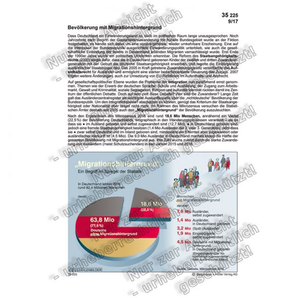 Nach den Ergebnissen des Mikrozensus 2019 sind 21,2 Mio Menschen, d.h. mehr als jeder vierte Einwohner Deutschlands, biographisch in den Wanderungsprozessen verankert – sei es, ● dass sie im Ausland geboren und selbst zugewandert sind, ● in Deutschland geboren sind, jedoch eine fremde Staatsangehörigkeit besitzen, oder dass sie ● zwar selbst Deutsche und im Inland geboren sind, mindestens ein Elternteil aber zugewandert oder ausländischer Herkunft ist.