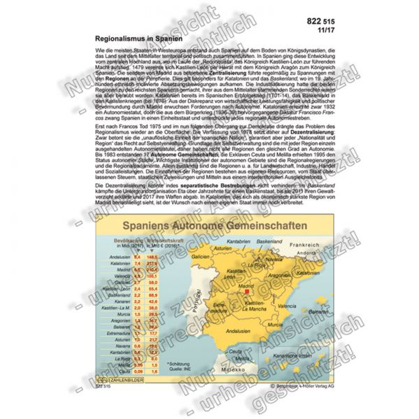 Die Dezentralisierung konnte indes separatistische Bestrebungen nicht verhindern: Im Baskenland kämpfte die Untergrundorganisation Eta über Jahrzehnte für einen Baskenstaat, bis sie 2011 ihren Gewaltverzicht erklärte und 2017 ihre Waffen abgab. In Katalonien, das sich als ökonomisch stärkste Region von Madrid benachteiligt sieht, ist der Wunsch nach einem eigenen Staat immer noch verbreitet.