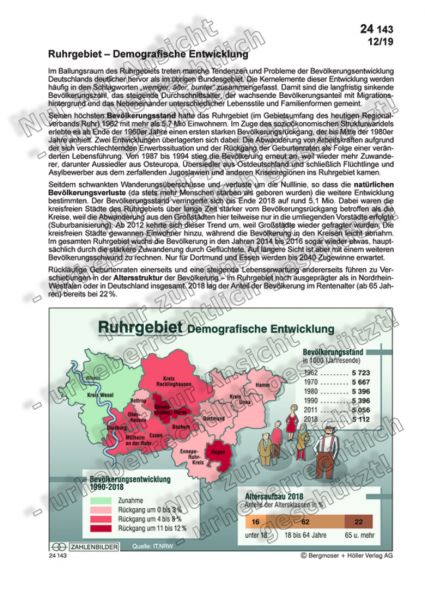 Im Ballungsraum des Ruhrgebiets treten manche Tendenzen und Probleme der Bevölkerungsentwicklung Deutschlands deutlicher hervor als im übrigen Bundesgebiet. Die Kernelemente dieser Entwicklung werden häufig in den Schlagworten „weniger, älter, bunter“ zusammengefasst. Damit sind die langfristig sinkende Bevölkerungszahl, das steigende Durchschnittsalter, der wachsende Bevölkerungsanteil mit Migrationshintergrund und das Nebeneinander unterschiedlicher Lebensstile und Familienformen gemeint.