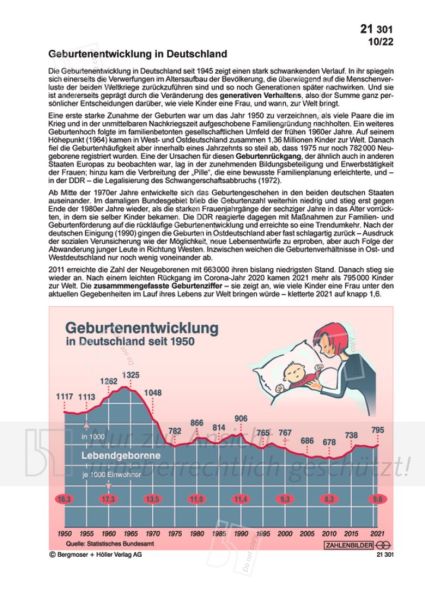 sich einerseits die Verwerfungen im Altersaufbau der Bevölkerung, die überwiegend auf die Menschenverluste der beiden Weltkriege zurückzuführen sind und so noch Generationen später nachwirken. Und sie ist andererseits geprägt durch die Veränderung des generativen Verhaltens, also der Summe ganz persönlicher Entscheidungen darüber, wie viele Kinder eine Frau, und wann, zu Welt bringt.