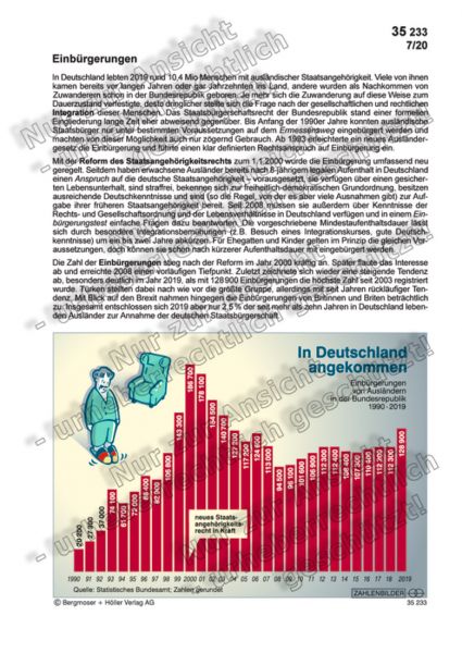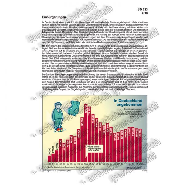 In Deutschland lebten 2023 mehr als 11 Millionen Menschen mit ausländischer Staatsangehörigkeit. Viele von ihnen waren bereits vor langen Jahren oder gar Jahrzehnten ins Land gekommen, andere wurden als Nachkommen von Zuwanderern schon in der Bundesrepublik geboren. Je mehr sich die Zuwanderung auf diese Weise zum Dauerzustand verfestigte, desto dringlicher stellte sich die Frage nach der gesellschaftlichen und rechtlichen Integration dieser Menschen. Das Staatsbürgerschaftsrecht der Bundesrepublik stand einer formalen Eingliederung lange Zeit abweisend gegenüber. Bis Anfang der 1990er Jahre konnten ausländische Staatsbürger nur unter bestimmten Voraussetzungen auf dem Ermessensweg eingebürgert werden und machten von dieser Möglichkeit auch nur zögernd Gebrauch. Ab 1993 erleichterte ein neues Ausländergesetz die Einbürgerung und führte einen klar definierten Rechtsanspruch auf Einbürgerung ein.