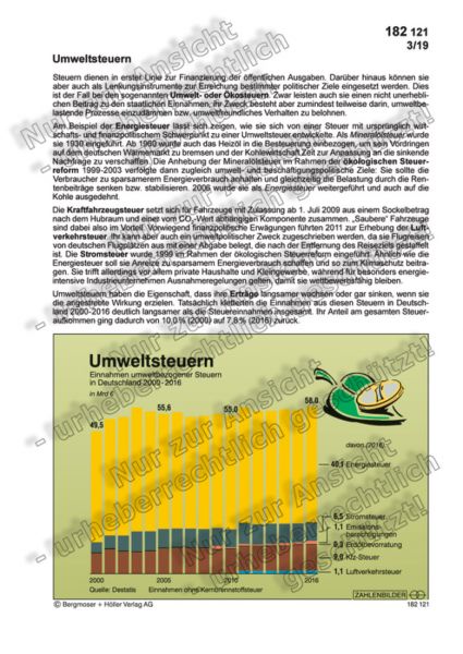 Steuern dienen in erster Linie zur Finanzierung der öffentlichen Ausgaben. Darüber hinaus können sie aber auch als Lenkungsinstrumente zur Erreichung bestimmter politischer Ziele eingesetzt werden. Dies ist der Fall bei den sogenannten Umwelt- oder Ökosteuern. Zwar leisten auch sie einen nicht unerheblichen Beitrag zu den staatlichen Einnahmen, ihr Zweck besteht aber zumindest teilweise darin, umweltbelastende Prozesse einzudämmen bzw. umweltfreundliches Verhalten zu belohnen.