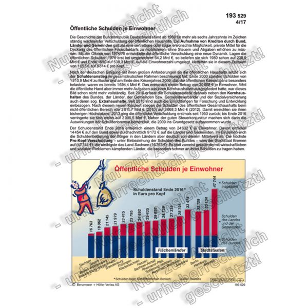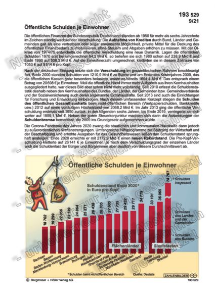 Das ZAHLENBILD erläutert den Anstieg der staatlichen und kommunalen Verschuldung in den letzten Jahrzehnten und stellt den Schuldenstand je Einwohner in den 16 Bundesländern vergleichend nebeneinander. Wo steht Ihr Bundesland in diesem Vergleich?