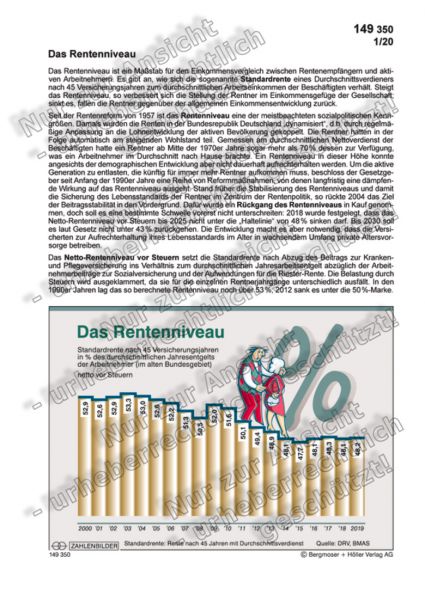 Seit der Rentenreform von 1957 ist das Rentenniveau eine der meistbeachteten sozialpolitischen Kenngrößen. Damals wurden die Renten in der Bundesrepublik Deutschland „dynamisiert“, d.h. durch regelmäßige Anpassung an die Lohnentwicklung der aktiven Bevölkerung gekoppelt. Die Rentner hatten in der Folge automatisch am steigenden Wohlstand teil. Gemessen am durchschnittlichen Nettoverdienst der Beschäftigten hatte ein Rentner ab Mitte der 1970er Jahre sogar mehr als 70 % dessen zur Verfügung, was ein Arbeitnehmer im Durchschnitt nach Hause brachte. Ein Rentenniveau in dieser Höhe konnte angesichts der demographischen Entwicklung aber nicht dauerhaft aufrechterhalten werden. Um die aktive Generation zu entlasten, die künftig für immer mehr Rentner aufkommen muss, beschloss der Gesetzgeber seit Anfang der 1990er Jahre eine Reihe von Reformmaßnahmen, von denen langfristig eine dämpfende Wirkung auf das Rentenniveau ausgeht. Stand früher die Stabilisierung des Rentenniveaus und damit die Sicherung des Lebensstandards der Rentner im Zentrum der Rentenpolitik, so rückte 2004 das Ziel der Beitragsstabilität in den Vordergrund. Dafür wurde ein Rückgang des Rentenniveaus in Kauf genommen, doch soll es eine bestimmte Schwelle nicht unterschreiten: 2018 wurde festgelegt, dass das Netto-Rentenniveau vor Steuern bis 2025 nicht unter die „Haltelinie“ von 48 % sinken darf. Bis 2030 soll es laut Gesetz nicht unter 43 % zurückgehen. Im Koalitionsvertrag der „Ampel“-Parteien von 2021 wurde allerdings eine dauerhafte Sicherung des 48-%-Rentenniveaus angekündigt. So oder so müssen die Versicherten zur Aufrechterhaltung ihres Lebensstandards zusätzliche private Altersvorsorge betreiben.