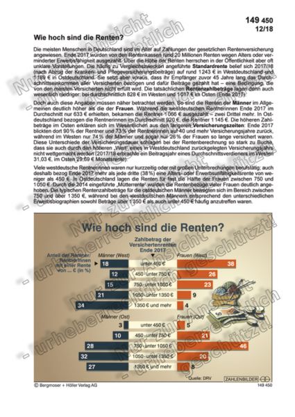 Die deutschen Rentenkassen zahlen jeden Monat mehr als 20 Millionen Alters- und Erwerbsminderungsrenten aus. Über die Höhe der Renten herrschen in der Öffentlichkeit oft unklare Vorstellungen. Informieren Sie sich hier über die Schichtung der Rentenbeträge und die Unterschiede zwischen West- und Ostdeutschland!
