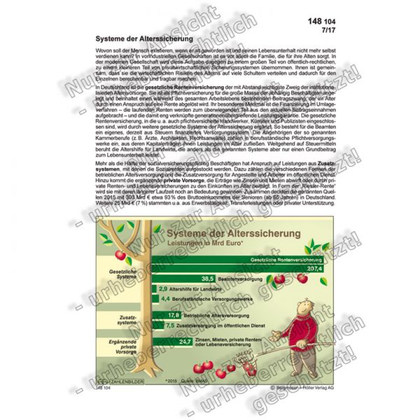 Wovon soll ein Mensch existieren, wenn er alt geworden ist und seinen Lebensunterhalt nicht mehr selbst verdienen kann? In vorindustriellen Gesellschaften ist es vor allem die Familie, die für ihre Alten sorgt. In der modernen Gesellschaft wird diese Aufgabe dagegen zu einem großen Teil von öffentlich-rechtlichen, zu einem kleineren Teil von privatwirtschaftlichen Sicherungssystemen übernommen. Ihnen ist gemeinsam, dass die sie wirtschaftlichen Risiken des Alterns auf viele Schultern verteilen und dadurch für den Einzelnen berechenbar und tragbar machen.