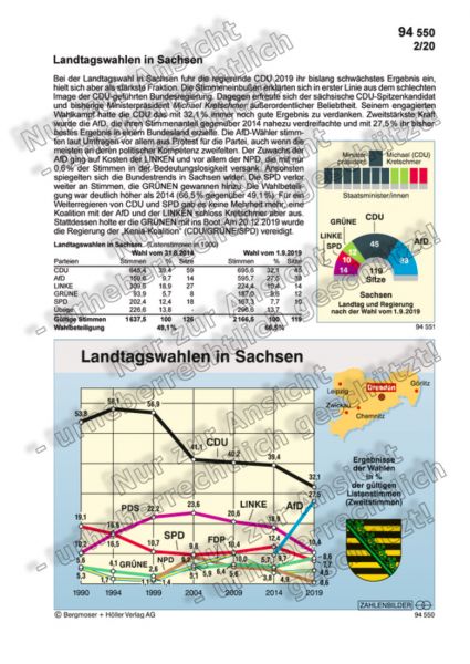 Stimmengewinne für AfD und BSW, aber ein knapper Vorsprung für die CDU, die in einer Minderheitsregierung nach wie vor den Ministerpräsidenten stellt. Das ist das Ergebnis der Landtagswahl 2024. Außerdem in diesem ZAHLENBILD: die Entwicklung der Stimmenanteile aller größeren Parteien seit 1990!