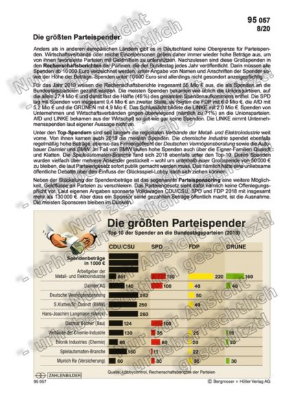 Anders als in anderen europäischen Ländern gibt es in Deutschland keine Obergrenze für Parteispenden. Wirtschaftsverbände oder reiche Einzelpersonen geben daher immer wieder hohe Beträge aus, um von ihnen favorisierte Parteien mit Geldmitteln zu unterstützen. Unter den Top-Spendern sind seit langem die regionalen Verbände der Metall- und Elektroindustrie weit vorne.