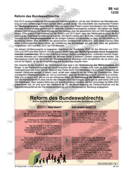 Zum dritten Mal innerhalb eines Jahrzehnts wurde 2023 das Bundeswahlrecht geändert. Noch vor der Bundestagsahl 2025 erzwang das Bundesverfassungsgericht eine Korrektur des neuen Wahlrechts: die Grundmandatsklausel gilt deshalb weiterhin. Das ZAHLENBILD fasst die zentralen Punkte der Wahlreform, wie sie heute gilt, zusammen: Grundinformationen für alle Wählerinnen und Wähler!