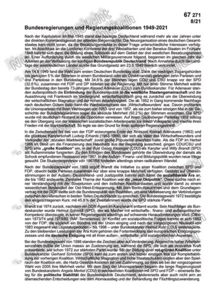 Bundesregierungen und Regierungskoalitionen 1949-2021 (Text)