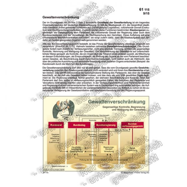 Der im Grundgesetz Art. 20 Abs. 2 Satz 2 formulierte Grundsatz der Gewaltenteilung ist ein tragendes Organisationsprinzip der deutschen Staatsverfassung. E ...