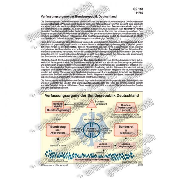 Die Verfassungsorgane der Bundesrepublik Deutschland und ihre Einordnung in das System der Gewaltenteilung und -verschränkung nach dem Grundgesetz. Ein klassisches ZAHLENBILD in aktueller Fassung!