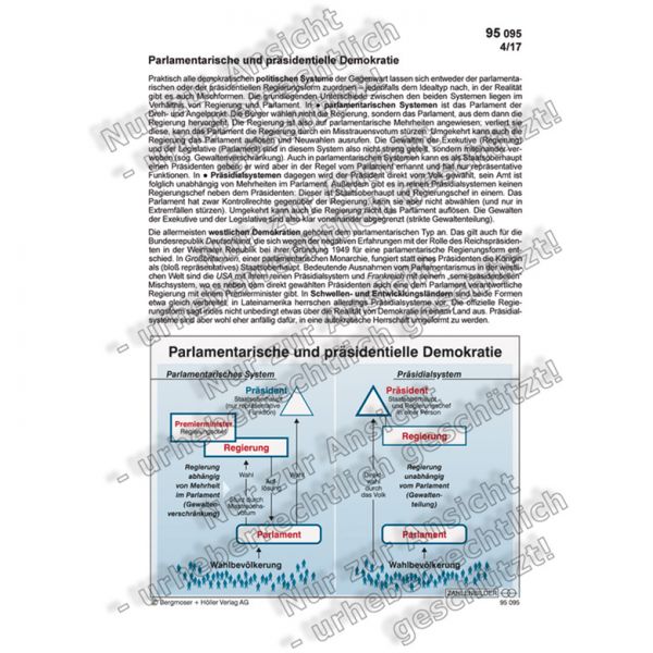 Praktisch alle demokratischen politischen Systeme der Gegenwart lassen sich entweder der parlamentarischen oder der präsidentiellen Regierungsform zuordnen – jedenfalls dem Idealtyp na ...