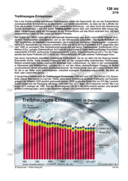 In Deutschland beliefen sich die Treibhausgas-Emissionen 1990 auf rund 1251 Mio Tonnen CO2-Äquivalente (alle Gase entsprechend ihrer Klimawirkung in CO2 umgerechnet). 2023 wurde dieser Wert mit 674 Mio t CO2 um fast die Hälfte (46 %) unterschritten – ein Ergebnis der fortschreitenden Energiewende, der milden Witterung, aber auch der lahmenden Wirtschaftskonjunktur. Soll der CO2-Ausstoß bis 2030, wie geplant, auf 438 Mio t reduziert werden, sind allerdings noch große Anstrengungen erforderlich.