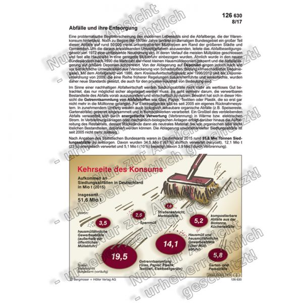 Nach Angaben des Statistischen Bundesamts waren in Deutschland 2019 rund 50,6 Mio Tonnen Siedlungsabfälle zu entsorgen. Davon wurden 34,2 Mio t (fast 68%) stofflich verwertet, also recycelt, 15,6 Mio t (31 %) energetisch verwertet und 0,8 Mio t (2 %) beseitigt, davon 143 000 t durch Verbrennung.