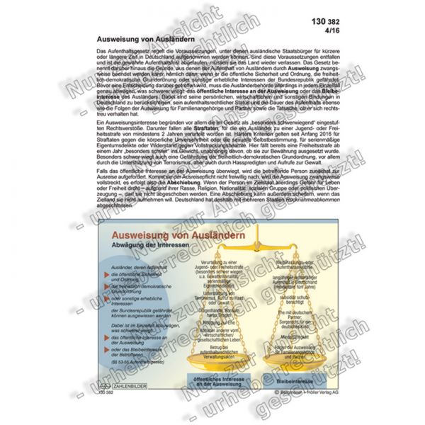 Das Aufenthaltsgesetz regelt die Voraussetzungen, unter denen ausländische Staatsbürger für kürzere oder längere Zeit in Deutschland aufgenommen werden können. Sind diese Voraussetzungen entfallen und ist die gewährte Aufenthaltsfrist abgelaufen, müssen sie das Land wieder verlassen. Das Gesetz benennt darüber hinaus die Gründe, aus denen der Aufenthalt von Ausländern durch Ausweisung zwangsweise beendet werden kann: nämlich dann, wenn er die öffentliche Sicherheit und Ordnung, die freiheitlich-demokratische Grundordnung oder sonstige erhebliche Interessen der Bundesrepublik gefährdet. Bevor eine Entscheidung darüber getroffen wird, muss die Ausländerbehörde allerdings in jedem Einzelfall genau abwägen, was schwerer wiegt: das öffentliche Interesse an der Ausweisung oder das Bleibeinteresse des Ausländers. Dabei sind seine persönlichen, wirtschaftlichen und sonstigen Bindungen in Deutschland zu berücksichtigen, sein aufenthaltsrechtlicher Status und die Dauer des Aufenthalts ebenso wie die Folgen der Ausweisung für Familienangehörige und Partner sowie die Tatsache, ob er sich rechtstreu verhalten hat.