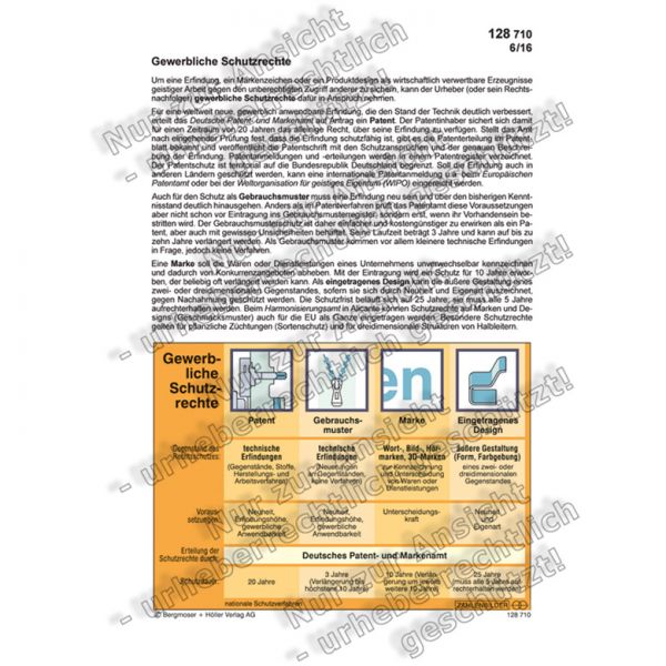 Um eine Erfindung, ein Markenzeichen oder ein Produktdesign als wirtschaftlich verwertbare Erzeugnisse geistiger Arbeit gegen den unberechtigten Zugriff anderer zu sichern, kann der Urheber (oder sein Rechtsnachfolger) gewerbliche Schutzrechte dafür in Anspruch nehmen.
