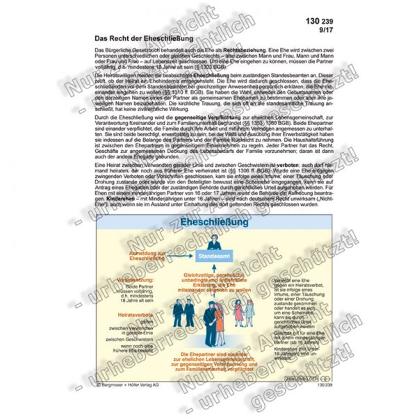Das Bürgerliche Gesetzbuch behandelt auch die Ehe als Rechtsbeziehung. Eine Ehe wird zwischen zwei Personen unterschiedlichen oder gleichen Geschlechts – also zwischen Mann und Frau, Mann und Mann oder Frau und Frau – auf Lebenszeit geschlossen. Um eine Ehe eingehen zu können, müssen die Partner volljährig, d.h. mindestens 18 Jahre alt sein (§ 1303 BGB).