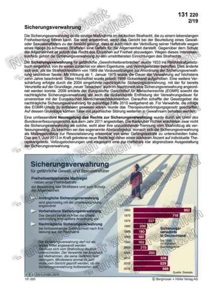 Die Sicherungsverwahrung ist die einzige Maßnahme im deutschen Strafrecht, die zu einem lebenslangen Freiheitsentzug führen kann. Sie wird angeordnet, wenn das Gericht bei der Beurteilung eines Gewalt- oder Sexualstraftäters zu der Ansicht gelangt, dass er auch nach der Verbüßung seiner Haftstrafe wegen eines Hangs zu schweren Straftaten eine Gefahr für die Allgemeinheit darstellt.