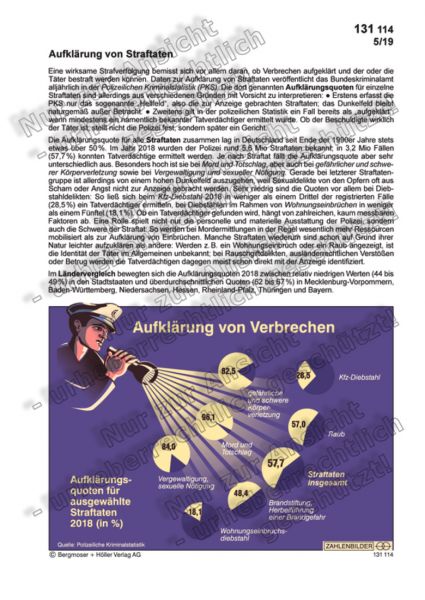 Eine wirksame Strafverfolgung bemisst sich vor allem daran, ob Verbrechen aufgeklärt und der oder die Täter bestraft werden können. Daten zur Aufklärung von Straftaten veröffentlicht das Bundeskriminalamt alljährlich in der Polizeilichen Kriminalstatistik (PKS). Die dort genannten Aufklärungsquoten für einzelne Straftaten sind allerdings aus verschiedenen Gründen mit Vorsicht zu interpretieren: • Erstens erfasst die PKS nur das sogenannte „Hellfeld“, also die zur Anzeige gebrachten Straftaten; das Dunkelfeld bleibt naturgemäß außer Betracht. • Zweitens gilt in der polizeilichen Statistik ein Fall bereits als „aufgeklärt“, wenn mindestens ein namentlich bekannter Tatverdächtiger ermittelt wurde. Ob der Beschuldigte wirklich der Täter ist, stellt nicht die Polizei fest, sondern später ein Gericht.