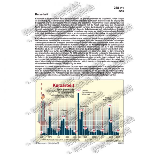 Neben der Kurzarbeit aus wirtschaftlichen Gründen regelt das Sozialgesetzbuch III auch die Saison- und die Transferkurzarbeit. Saisonkurzarbeitergeld stabilisiert die Beschäftigung im Baugewerbe bei witterungsbedingtem Arbeitsausfall oder Auftragsmangel. Transferkurzarbeitergeld erhalten Arbeitnehmer, die nach einer betrieblichen Umstrukturierung in einer Transfergesellschaft aufgefangen werden.