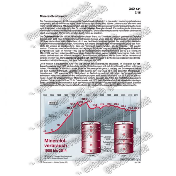 Die Ölpreisschocks der 1970er Jahre stoppten diesen Trend. Auf Grund der drastisch gestiegenen Ölpreise bildeten sich bald neue Energieverbrauchsstrukturen heraus. Zwar stieg der Ölverbrauch in Deutschland 1979 noch einmal auf einen Rekordwert, doch war die Wende bereits eingeleitet. Die strukturellen Veränderungen (Verbrauchseinsparungen, Umstellung auf andere Energieträger, höherwertige Nutzung des Rohstoffs Öl) wirkten so durchgreifend, dass der Verbrauch kaum zunahm, als die Ölpreise 1986 wieder sanken. Zu neuen dauerhaften Verbrauchsrückgängen führte der langjährige Anstieg der Rohölimportpreise ab 1999.
