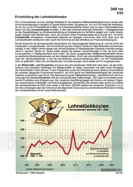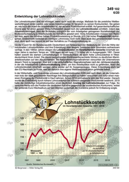 Die Lohnstückkosten sind ein wichtiger Maßstab für die Wettbewerbsfähigkeit einer Volkswirtschaft. Verfolgen Sie anhand des ZAHLENBILDS die Entwicklung der Lohnstückkosten in der Industrie seit 1991 und lesen Sie, welche Faktoren und Ereignisse zu dieser Entwicklung beitrugen!