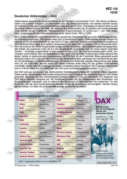 Aktienindizes spiegeln die Kursentwicklung an der Börse in konzentrierter Form. Sie dienen professionellen und privaten Anlegern zur Information über das Börsengeschehen und werden darüber hinaus als Indikator für die allgemeine wirtschaftliche Lage wahrgenommen. Wichtigstes Kursbarometer für den deutschen Aktienmarkt ist der DAX, der sich (seit dem 20.9.2021) aus den Aktienwerten der 40 größten Unternehmen an der Frankfurter Wertpapierbörse zusammensetzt. Er wurde mit damals 30 Aktienwerten zum 1. Juli 1988 eingeführt. Ausgangspunkt der Indexberechnung ist der Stand Ende 1987 (= 1000).