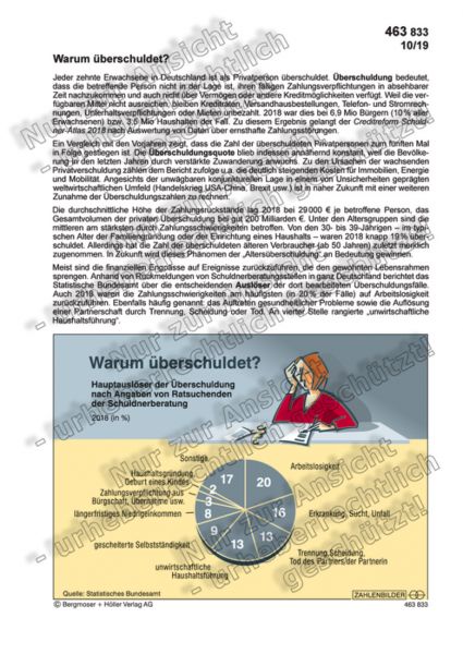 Etwa jeder zwölfte Erwachsene in Deutschland ist überschuldet und damit nicht in der Lage, seine Zahlungsverpflichtungen in absehbarer Zeit zu erfüllen. Wodurch Schuldner in eine solche Lage kommen und welche Gläubiger am häufigsten genannt werden, erfahren Sie aus diesem ZAHLENBILD!