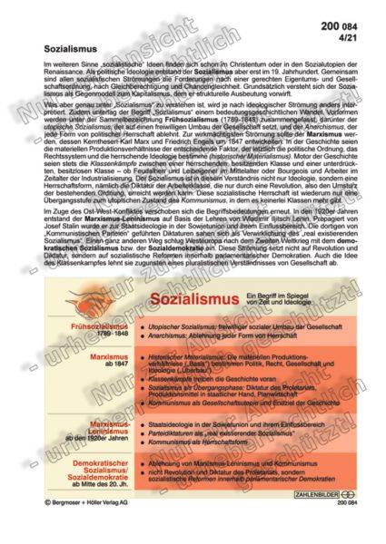 Im weiteren Sinne „sozialistische“ Ideen finden sich schon im Christentum oder in den Sozialutopien der Renaissance. Als politische Ideologie entstand der Sozialismus aber erst im 19. Jahrhundert. Gemeinsam sind allen sozialistischen Strömungen die Forderungen nach einer gerechten Eigentums- und Gesellschaftsordnung, nach Gleichberechtigung und Chancengleichheit. Grundsätzlich versteht sich der Sozialismus als Gegenmodell zum Kapitalismus, dem er strukturelle Ausbeutung vorwirft.