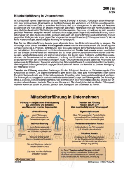 Wer in einem Unternehmen oder einer Behörde beschäftigt ist, hat unweigerlich mit dem Thema "Führung" zu tun, ob als einfacher Mitarbeiter oder als Führungskraft. Das ZAHLENBILD erläutert grundlegende Fragen rund um den Begriff "Führung": Was sind ihre Merkmale, mit welchen Mitteln arbeitet sie, was macht gute Führung aus?