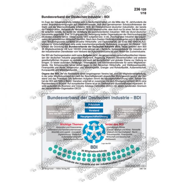 Ein kurzgefasster Rückblick auf die Geschichte der industriellen Interessenvertretung, dazu ein Schaubild zur Organisationsstruktur und zu den thematischen Schwerpunkten des BDI: Information in konzentrierter Form!