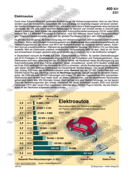 Nach den Plänen der Bundesregierung sollten 2030 sieben bis zehn Millionen Elektroautos auf Deutschlands Straßen unterwegs sein und so zur Erfüllung der anspruchsvollen Klimaziele beitragen. Schon 2016 wurde eine Prämie als Kaufanreiz für Elektroautos und aufladbare Hybrid-Pkws (Plug-in-Hybride) eingeführt. Neue Elektroautos sind für zehn Jahre von der Kfz-Steuer befreit. 2020 wurde die Kaufprämie (der „Umweltbonus“) deutlich erhöht, am 17.12.2023 wegen der Finanzierungsprobleme des Klima- und Transformationsfonds aber vorzeitig gestrichen. In den Jahren 2020-2023 gab sie der Nachfrage nach Elektroautos deutlichen Auftrieb. Im Fahrzeugbestand gewinnen elektrisch betriebene Pkw jedoch erst allmählich an Gewicht: Von insgesamt 49,1 Mio Pkw in Deutschland verfügten Anfang 2024 erst 1,4 Mio (2,9 %) über einen rein elektrischen Antrieb. Hinzu kamen 2,9 Mio (5,9 %) Hybrid-Fahrzeuge, darunter 922 000 (1,9 %) Plug-in-Hybride.