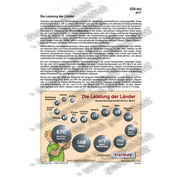 Die deutschen Bundesländer unterscheiden sich im Hinblick auf Bevölkerung und wirtschaftliche Voraussetzungen. Das wirkt sich auf die jährliche Wirtschaftsleistung aus. Die Rangfolge der Länder nach der Größe ihres Bruttoinlandsprodukts!