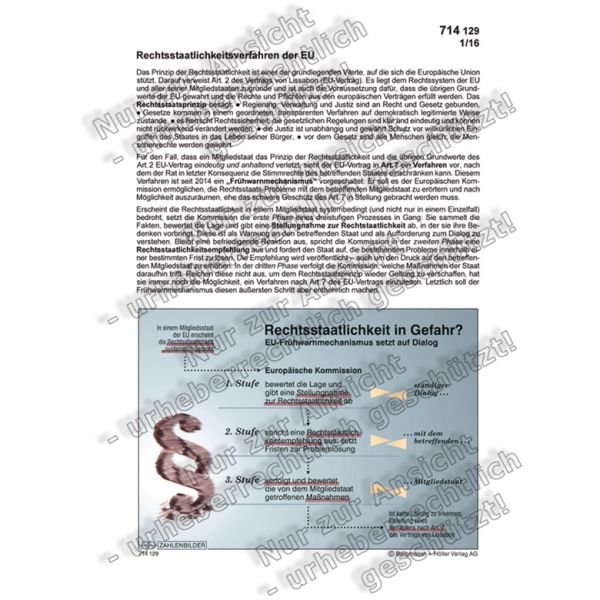 Das Prinzip der Rechtsstaatlichkeit ist einer der grundlegenden Werte, auf die sich die Europäische Union stützt. Darauf verweist Art. 2 des Vertrags von Lissabon (EU-Vertrag). Es liegt dem Rechtssystem der EU und aller seiner Mitgliedstaaten zugrunde und ist auch die Voraussetzung dafür, dass die übrigen Grundwerte der EU gewahrt und die Rechte und Pflichten aus den europäischen Verträgen erfüllt werden. Das Rechtsstaatsprinzip besagt: • Regierung, Verwaltung und Justiz sind an Recht und Gesetz gebunden, • Gesetze kommen in einem geordneten, transparenten Verfahren auf demokratisch legitimierte Weise zustande, • es herrscht Rechtssicherheit; die gesetzlichen Regelungen sind klar und eindeutig und können nicht rückwirkend verändert werden, • die Justiz ist unabhängig und gewährt Schutz vor willkürlichen Eingriffen des Staates in das Leben seiner Bürger, • vor dem Gesetz sind alle Menschen gleich; die Menschenrechte werden gewahrt.