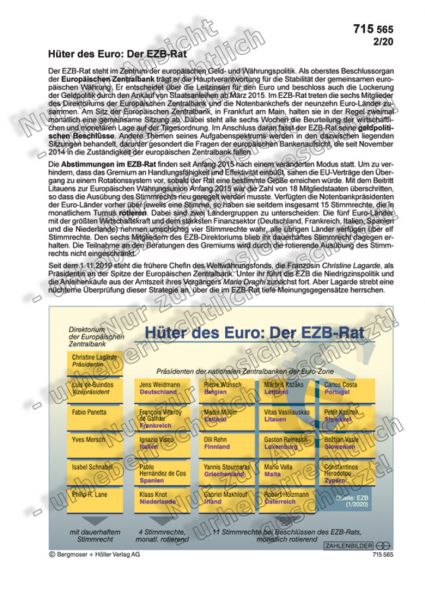 Seit dem 1.11.2019 steht die Französin Christine Lagarde als Präsidentin an der Spitze der Europäischen Zentralbank. Unter ihr führte die EZB die Niedrigzinspolitik und die Anleihenkäufe aus der Zeit ihres Vorgängers zunächst fort. Inzwischen hat die EZB ihr Inflationsziel neu definiert und den Kampf gegen die Inflation mit der Anhebung der Leitzinsen 2022 wieder zum Schwerpunkt ihrer Geldpolitik gemacht.