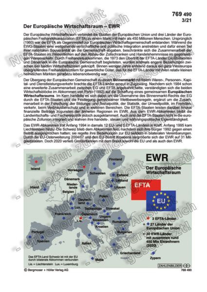 Der Europäische Wirtschaftsraum (EWR) umfasst 30 Länder mit insgesamt rund 450 Millionen Einwohnern. Das ZAHLENBILD gibt einen Überblick über den EWR. Jetzt für Ihren Unterricht herunterladen!