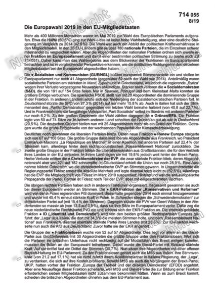 Im Europäischen Parlament sind Abgeordnete aus rund 220 Parteien der einzelnen Mitgliedstaaten vertreten. Fast alle haben sich einer der acht Fraktionen im EP angeschlossen. Wo sind die Fraktionen im politischen Spektrum zwischen links und rechts einzuordnen? Aus welchen Ländern kommen ihre Mitglieder? Ergänzende Informationen finden Sie im ZAHLENBILD 714054!