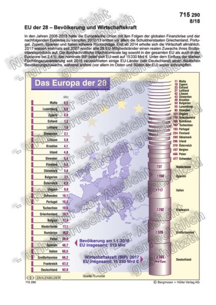 Die EU verbindet 27 Staaten sehr unterschiedlichen Gewichts. Die Größenverhältnisse in Bezug auf Bevölkerungszahl und Wirtschaftskraft finden Sie in diesem ZAHLENBILD anschaulich dargestellt. Laden Sie es gleich herunter!