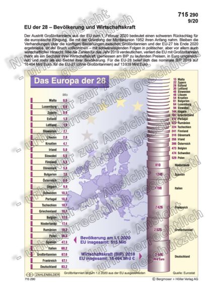 Die EU verbindet 27 Staaten sehr unterschiedlichen Gewichts. Die Größenverhältnisse in Bezug auf Bevölkerungszahl und Wirtschaftskraft finden Sie in diesem ZAHLENBILD anschaulich dargestellt. Laden Sie es gleich herunter!