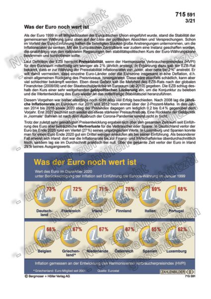 Die hohen Inflationsraten der Jahre 2022 und 2023 trugen zu den beträchtlichen Wertverlusten bei, die sich über den gesamten Zeitraum seit Einführung des Euro für Verbraucher oder Sparer ergaben. So verlor der Euro in Luxemburg bis Oktober 2023 fast die Hälfte (46 %) seines ursprünglichen Werts; in Deutschland büßte er, am Anstieg des inländischen Verbraucherpreisindex gemessen, rund 39 % des Wertes ein, den er bei seiner Einführung hatte.