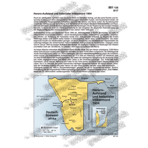 Rund ein Jahrhundert, nachdem das Deutsche Reich im Versailler Vertrag „auf alle seine Rechte und Ansprüche in bezug auf seine überseeischen Besitzungen“ verzichten musste, wird Deutschland wieder mit seiner kolonialen Vergangenheit konfrontiert. Vertreter der Herero und Nama wollen die Bundesrepublik wegen der Verfolgung und Vernichtung ihrer Vorfahren im damaligen Deutsch-Südwestafrika auf Reparationen verklagen. Und die Bundesregierung führt Verhandlungen mit der Regierung des heutigen Staates Namibia, in denen es auch um Wiedergutmachung für das Vorgehen der deutschen Kolonialtruppen bei der Niederschlagung des Herero-Aufstands in den Jahren 1904-1908 geht.