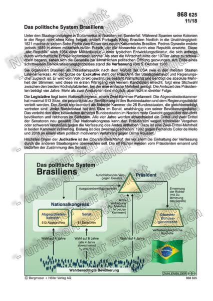 Unter den Staatsgründungen in Südamerika ist Brasilien ein Sonderfall. Während Spanien seine Kolonien in der Regel nicht ohne Krieg freigab, entließ Portugals König Brasilien friedlich in die Unabhängigkeit: 1821 machte er seinen Sohn Pedro zum Kaiser des neuen Kaiserreichs Brasilien. Pedros Dynastie endete jedoch 1889 in einem militärisch-zivilen Putsch, der die Monarchie durch eine Republik ersetzte. Diese „alte Republik“ wich 1964 einer Militärdiktatur — einer typischen Entwicklungsdiktatur, die sich anfangs durch wirtschaftliche Erfolge legitimieren konnte. Als aber die Wirtschaft Mitte der 1970er Jahre zu schwächeln begann, sahen sich die Generäle zur allmählichen politischen Öffnung gezwungen. Am Ende eines schrittweisen Demokratisierungsprozesses stand die Verfassung vom 5. Oktober 1988.