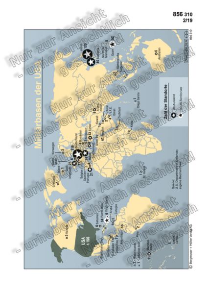 Die Rolle der USA als globale Supermacht wird besonders augenfällig durch das Netz ständiger Militärbasen, das sie rund um den Erdball gespannt haben. Kein anderer Staat unterhält auch nur annähernd so viele militärische Stützpunkte jenseits seiner Grenzen.