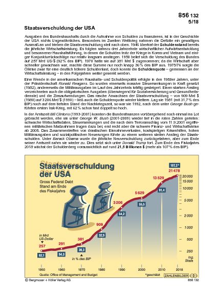 Die Entwicklung der Staatsverschuldung in den USA seit 1950 in einer grafischen Darstellung. Der Text geht den wesentlichen Gründen für den Anstieg der Schulden nach. Ideal für den Politik- oder Geschichtsunterricht!
