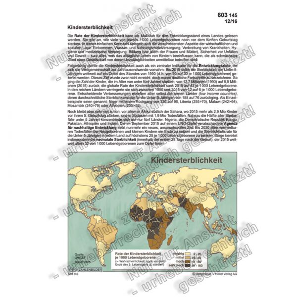 Die Agenda für nachhaltige Entwicklung hat sich zum Ziel gesetzt, bis 2030 die Sterblichkeitsrat der Unter-5-Jährigen in jedem Land der Erde auf höchstens 25 je 1000 Lebendgeborene zu senken. Trotz großer Fortschritte ist die Realität in vielen Ländern davon noch weit entfernt. Zahlen der Unicef für 2021!