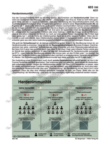 Aus der Corona-Pandemie führt nur ein Weg heraus: das Erreichen von Herdenimmunität. Denn nur wenn ein Großteil der Bevölkerung – der „Herde“ – immun gegen das Virus ist, findet es nicht mehr genügend Wirte, um sich so rasant zu verbreiten, dass eine Überlastung des Gesundheitssystems droht. Die Ausbreitungsgeschwindigkeit eines Erregers wird gemessen anhand seiner Reproduktionszahl (R). Ist R größer als 1, steckt jeder Infizierte im Laufe seiner Infektion durchschnittlich mehrere andere Personen an, der Erreger verbreitet sich also exponentiell. Das ist zu Beginn von Epidemien und Pandemien mit einem neuartigen, hochansteckenden Erreger der Fall. Erst wenn ein bestimmter Anteil der Bevölkerung immun ist – infolge einer durchgemachten Infektion oder einer Impfung –, stößt der Erreger so oft auf Barrieren, dass er von einem Infizierten im Schnitt nur noch auf eine andere Person überspringt. Der R-Wert liegt dann genau bei 1, und die Kurve der Infektionszahlen flacht ab zu einer linearen Funktion. Wenn die Immunität so weit verbreitet ist, dass Infektionsketten immer wieder in Sackgassen enden, stirbt der Erreger entweder ganz aus oder seine Ausbreitungsgeschwindigkeit pendelt sich auf niedrigem Niveau ein.