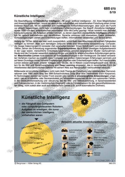 Die Beschäftigung mit Künstlicher Intelligenz – KI (engl.: artificial intelligence - AI), ihren Möglichkeiten und Anwendungsbereichen, nimmt vor allem in der industriellen und industrienahen Forschung einen immer breiteren Raum ein. Mit ihr verbinden sich hochfliegende Fortschrittserwartungen, aber auch die Furcht vor ethisch fragwürdigen, nicht mehr umkehrbaren Fehlentwicklungen. Der Begriff „Künstliche Intelligenz“ wurde 1956 von dem amerikanischen Informatiker John McCarthy geprägt. Heute versteht man darunter Computersysteme, die Aufgaben erfüllen können, zu denen eigentlich menschliche Intelligenz erforderlich ist: optisch wahrnehmen und identifizieren, Sprache erkennen und übersetzen, Daten auswerten, Schlussfolgerungen ziehen und Entscheidungen treffen, Informationen verarbeiten und daraus lernen.