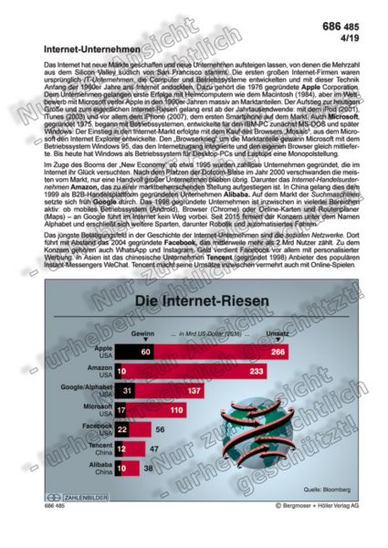 Das Internet hat neue Märkte geschaffen und neue Unternehmen aufsteigen lassen, von denen die Mehrzahl aus dem Silicon Valley südlich von San Francisco stammt. Die ersten großen Internet-Firmen waren ursprünglich IT-Unternehmen, die Computer und Betriebssysteme entwickelten und mit dieser Technik Anfang der 1990er Jahre ans Internet andockten. Dazu gehört die 1976 gegründete Apple Corporation. Dem Unternehmen gelangen erste Erfolge mit Heimcomputern wie dem Macintosh (1984), aber im Wettbewerb mit Microsoft verlor Apple in den 1990er Jahren massiv an Marktanteilen. Der Aufstieg zur heutigen Größe und zum eigentlichen Internet-Riesen gelang erst ab der Jahrtausendwende: mit dem iPod (2001), iTunes (2003) und vor allem dem iPhone (2007), dem ersten Smartphone auf dem Markt. Auch Microsoft, gegründet 1975, begann mit Betriebssystemen, entwickelte für den IBM-PC zunächst MS-DOS und später Windows. Der Einstieg in den Internet-Markt erfolgte mit dem Kauf des Browsers „Mosaic“, aus dem Microsoft den Internet Explorer entwickelte. Den „Browserkrieg“ um die Marktanteile gewann Microsoft mit dem Betriebssystem Windows 95, das den Internetzugang integrierte und den eigenen Browser gleich mitlieferte. Bis heute hat Windows als Betriebssystem für Desktop-PCs und Laptops eine Monopolstellung.