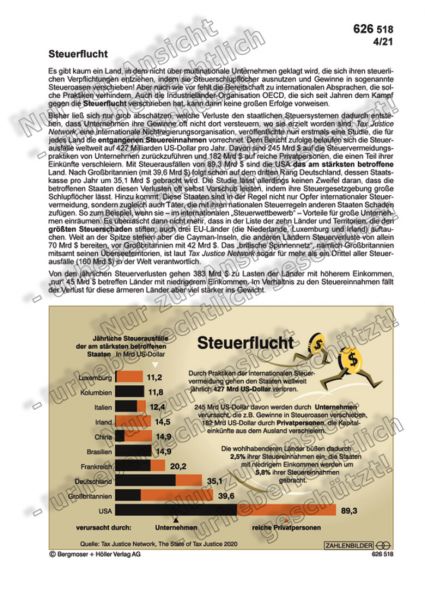Von den jährlichen Steuerverlusten gehen 383 Mrd $ zu Lasten der Länder mit höherem Einkommen, „nur“ 45 Mrd $ betreffen Länder mit niedrigerem Einkommen. Im Verhältnis zu den Steuereinnahmen fällt der Verlust für diese ärmeren Länder aber viel stärker ins Gewicht.